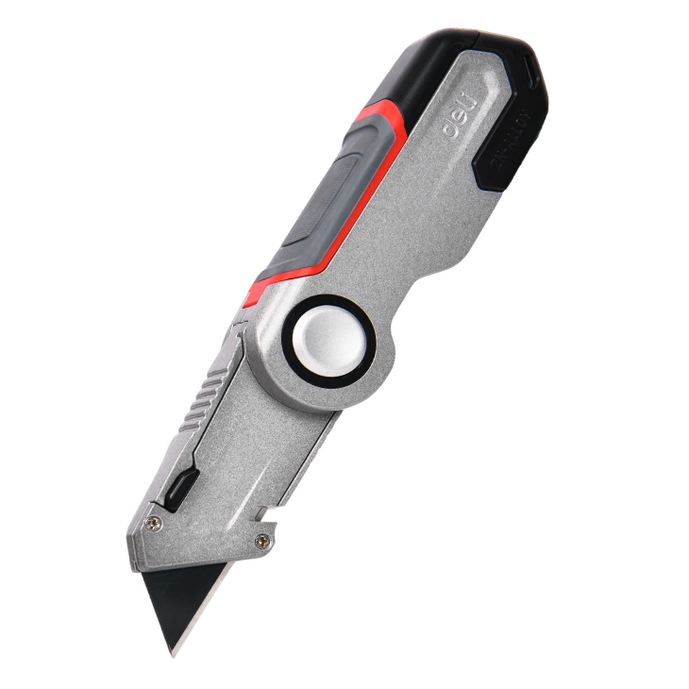 Строительный складной нож с Т-образным лезвием Deli DL030 в комплекте 3 запасных лезвия SK2, рукоятка из цинкового сплава с резиновыми вставками