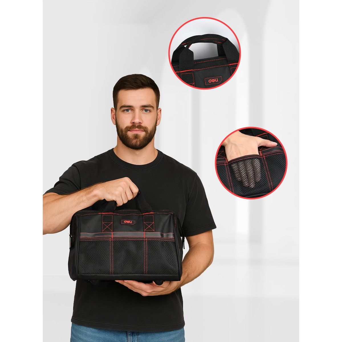 С сумкой Deli DL430903 «Black Edition» ваши инструменты всегда будут под рукой и в сохранности. Отличный выбор для мастеров, которые ценят качество и практичность!