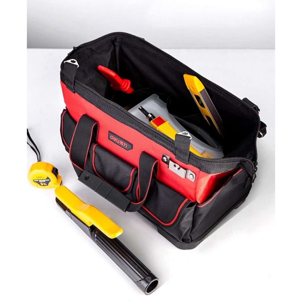 Ищете надёжную и удобную сумку для хранения и переноски инструментов? Сумка для инструментов с жёстким пластиковым дном Deli DL430316 — это отличный выбор.
