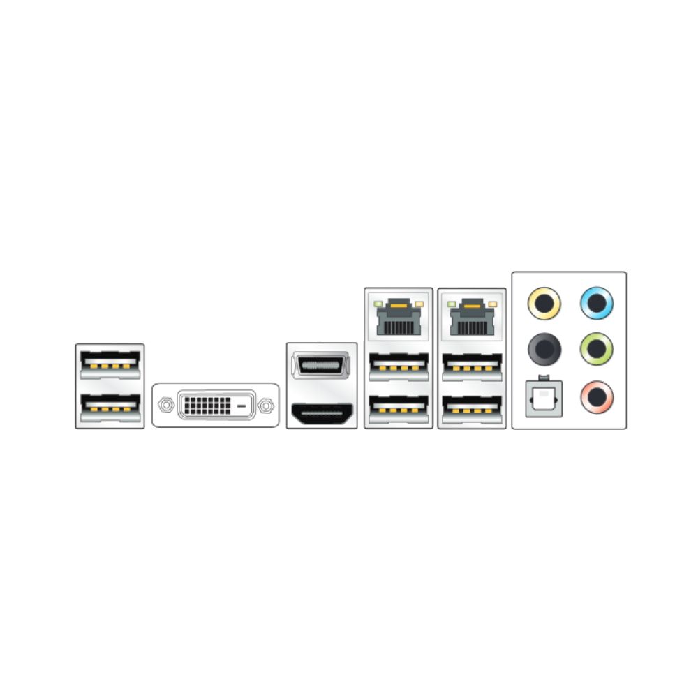 - 6 портов USB 2.0 и 6 портов USB 3.0 для подключения периферийных устройств.