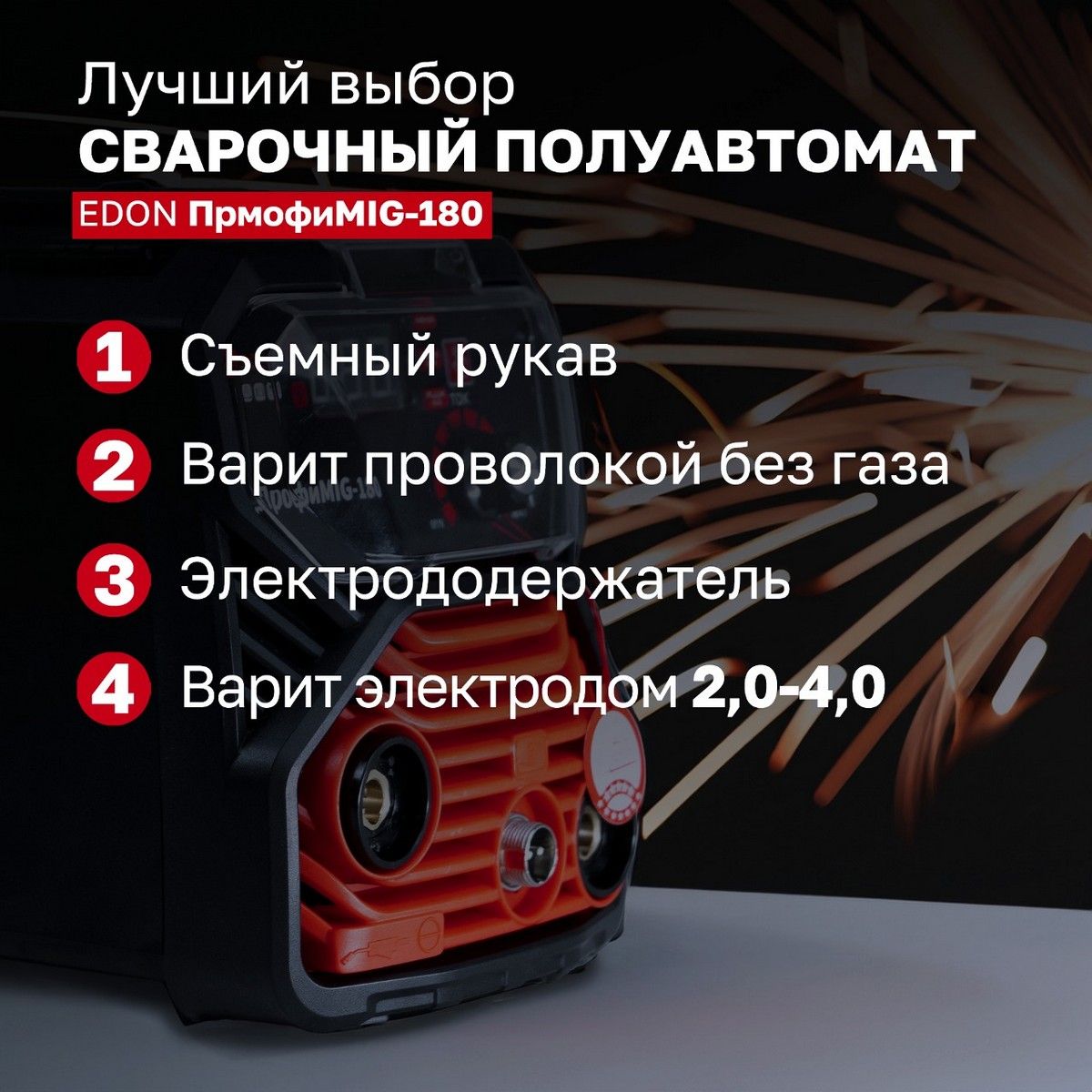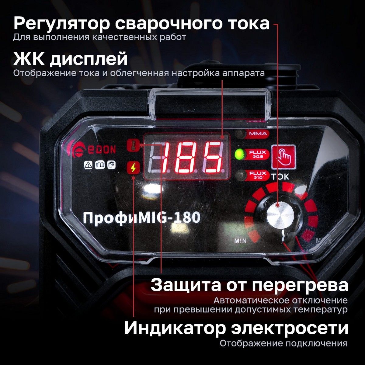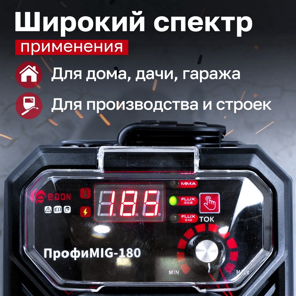 Edon ПрофиMIG-180 — это универсальное сварочное оборудование, которое позволяет проводить работы в режимах MIG и MMA. Оно подходит как для профессионального, так и для любительского использования.
