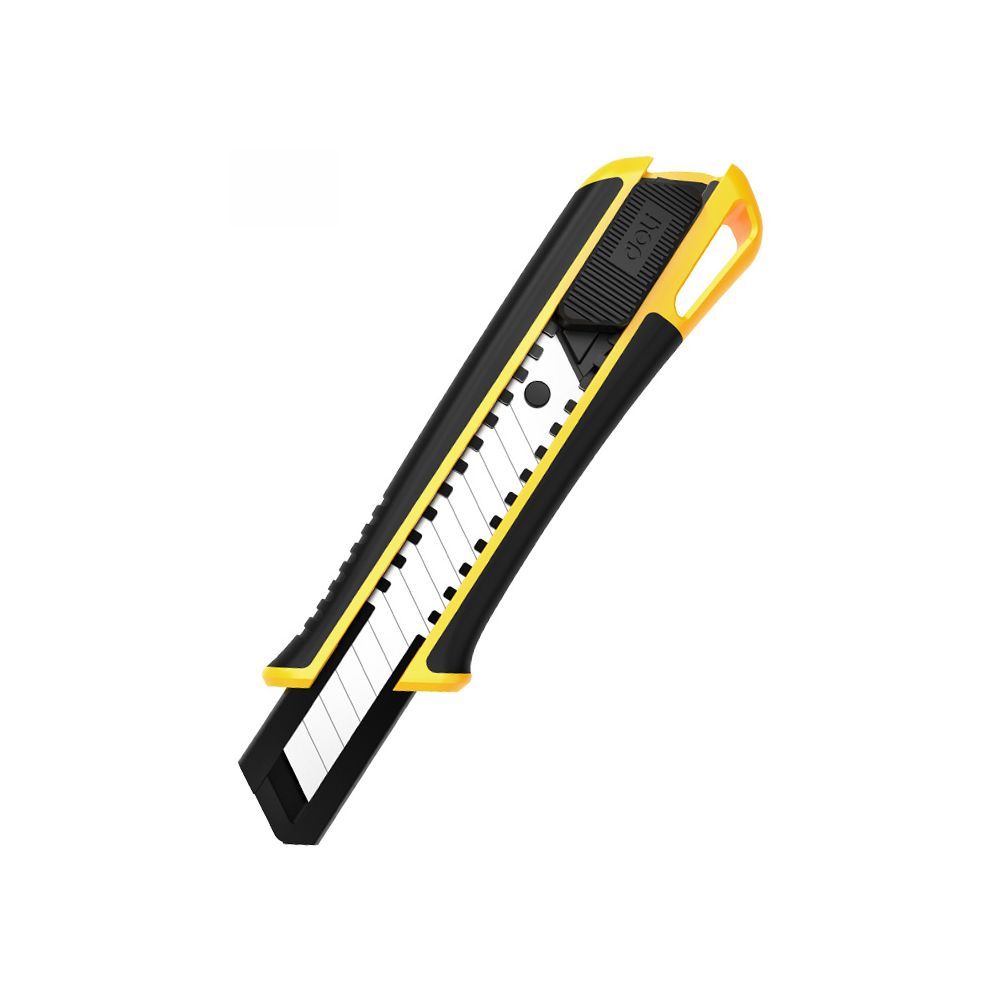 Технический нож Deli DL003H 18мм, лезвие SK5, ударопрочный корпус, автоматическая блокировка, прорезиненная рукоятка