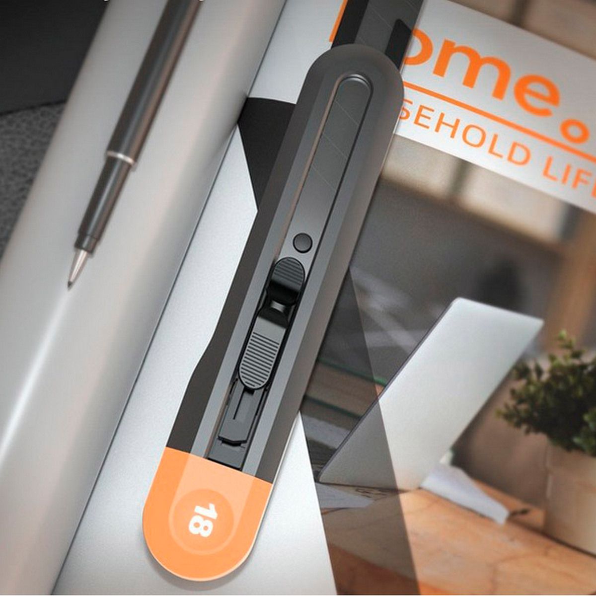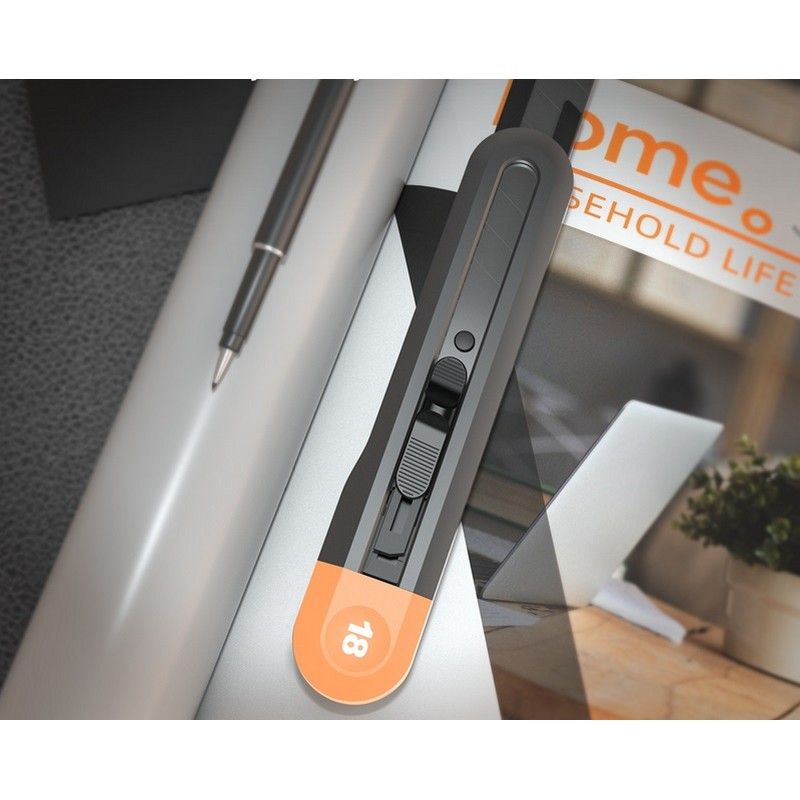 Технический нож "Home Series Gray" Deli HT4018C ширина лезвия 18мм, эксклюзивный дизайн, корпус из высококачественного софттач пластика
