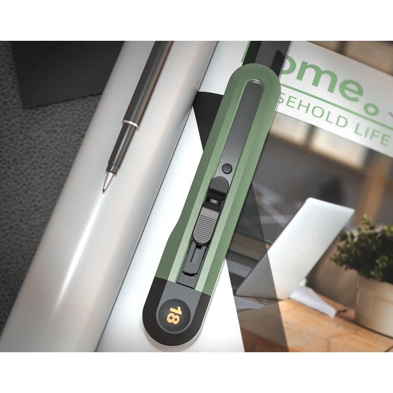 Технический нож "Home Series Green" Deli HT4018L ширина лезвия 18мм, эксклюзивный дизайн, корпус из высококачественного софттач пластика
