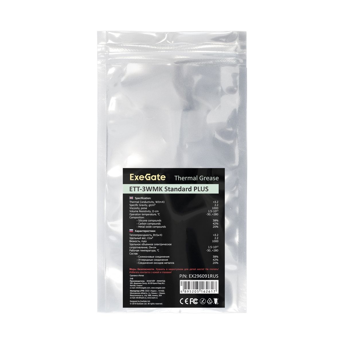 Термопаста Exegate ETТ-3WMK Standard PLUS (3,2 Вт/(м•К), 1.5г, шприц с лопаткой)