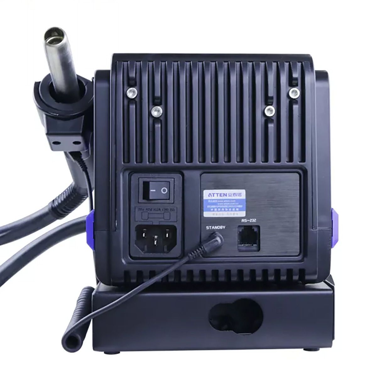 Двухканальная термовоздушная паяльная станция Atten GT-8102 — это профессиональное оборудование для пайки различных электронных компонентов. Она оснащена мощным нагревателем на 1000 Вт и работает от сети 230 В, что обеспечивает быстрый нагрев и стабильную работу.