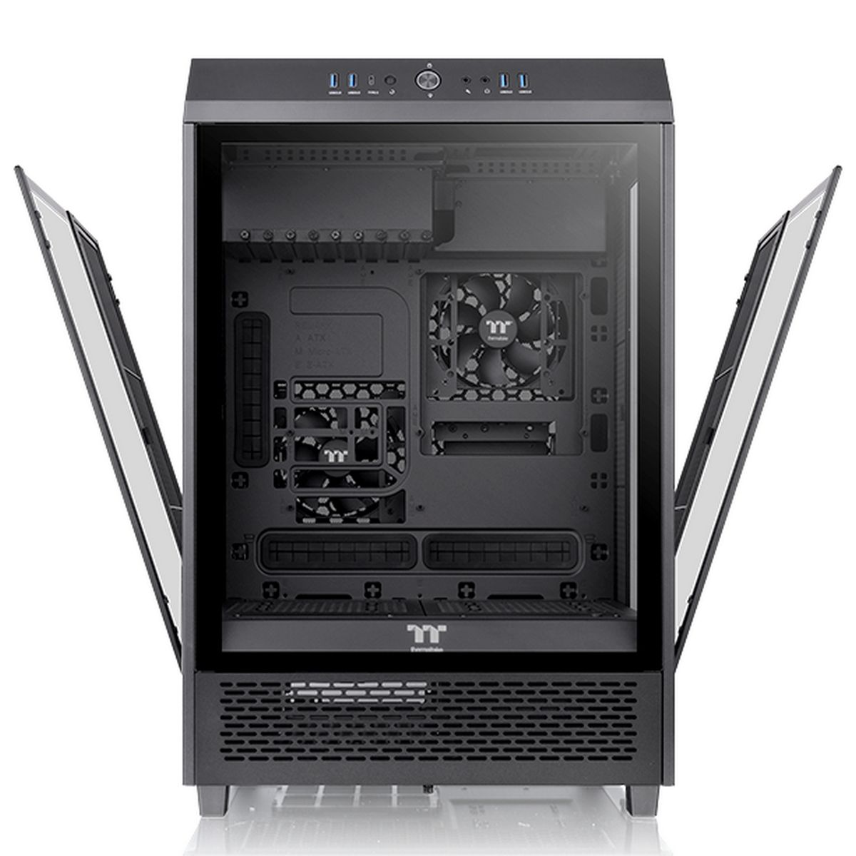 Корпус Thermaltake The Tower 500 CA-1X1-00M1WN-00 Black,Win,SPCC,Tempered Glass*3/120mm Standard Fan*2, USB 3.0 x 2, CA-1X1-00M1WN-00 USB 2.0 x 2, HD Audio x 1, CPU 180mm, VGA 278mm(with HDD rack) 420mm(without HDD rack)