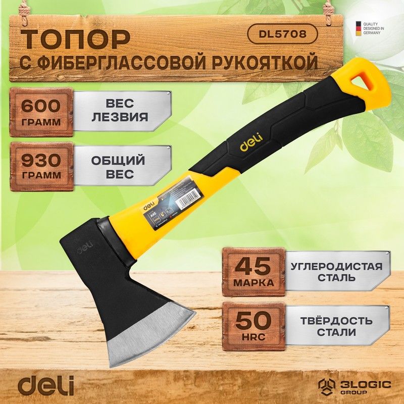 Топор Deli DL5708 600 грамм, фиберглассовая рукоять