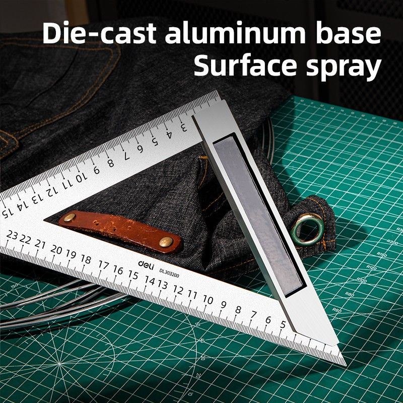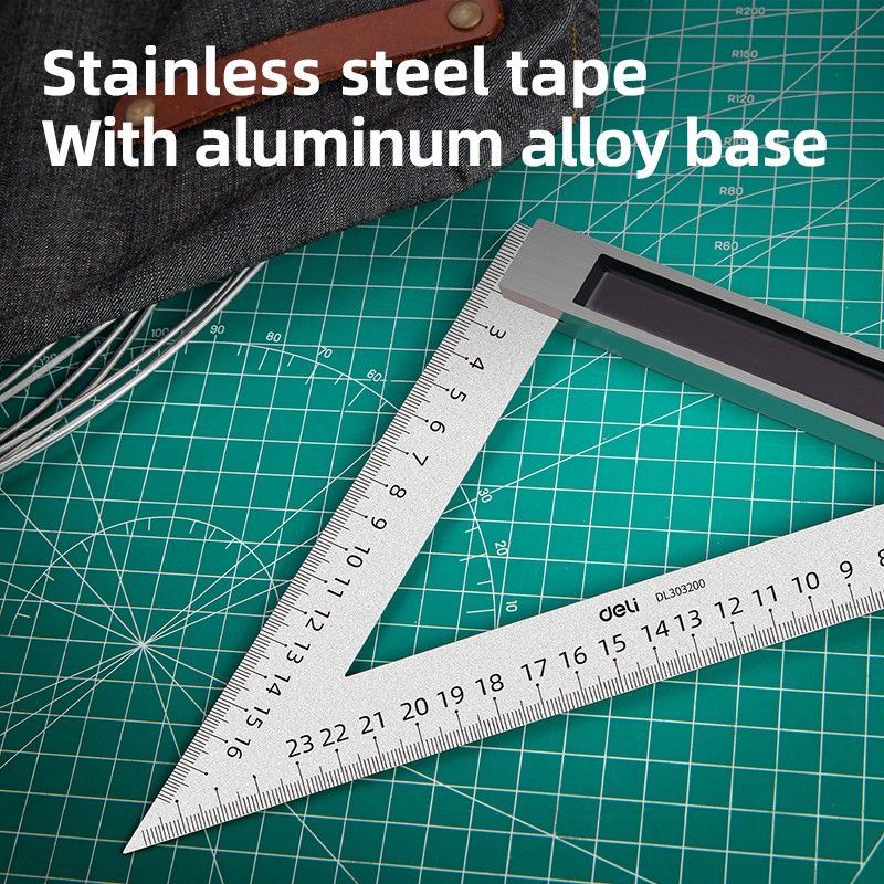 Треугольная линейка стальная Deli DL303200 200мм, нержавеющая сталь + алюминиевое основание