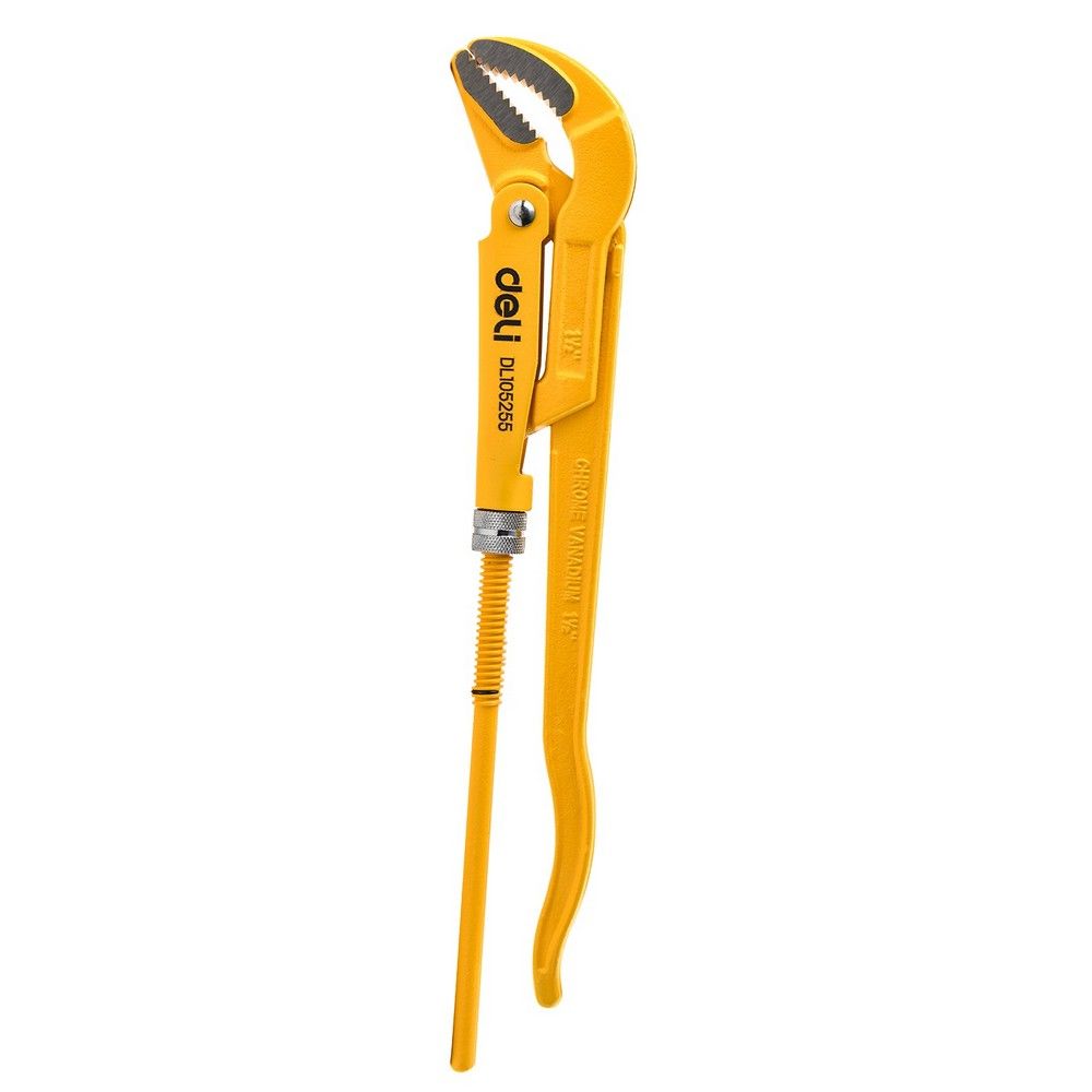 Трубный рычажный ключ №2 с изогнутыми губками Deli DL105255 420мм, раскрытие губок 0-55мм, сталь Cr-V Bad Pack