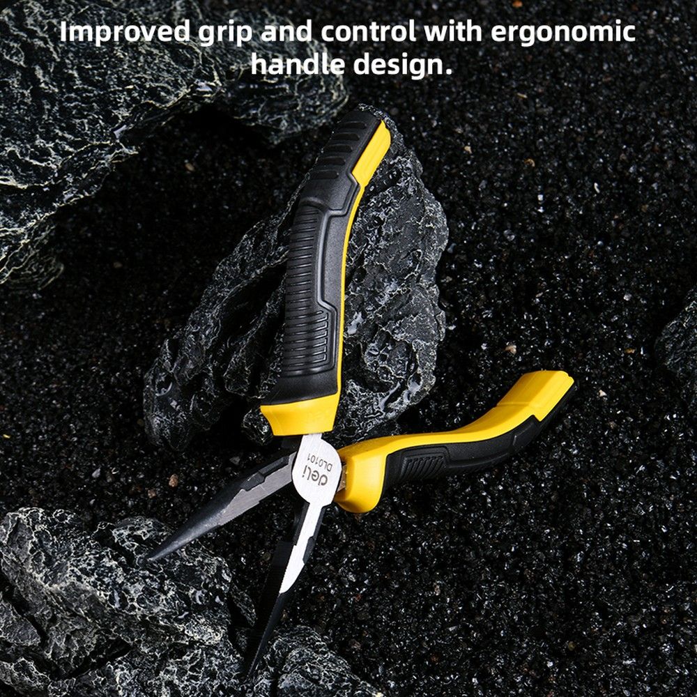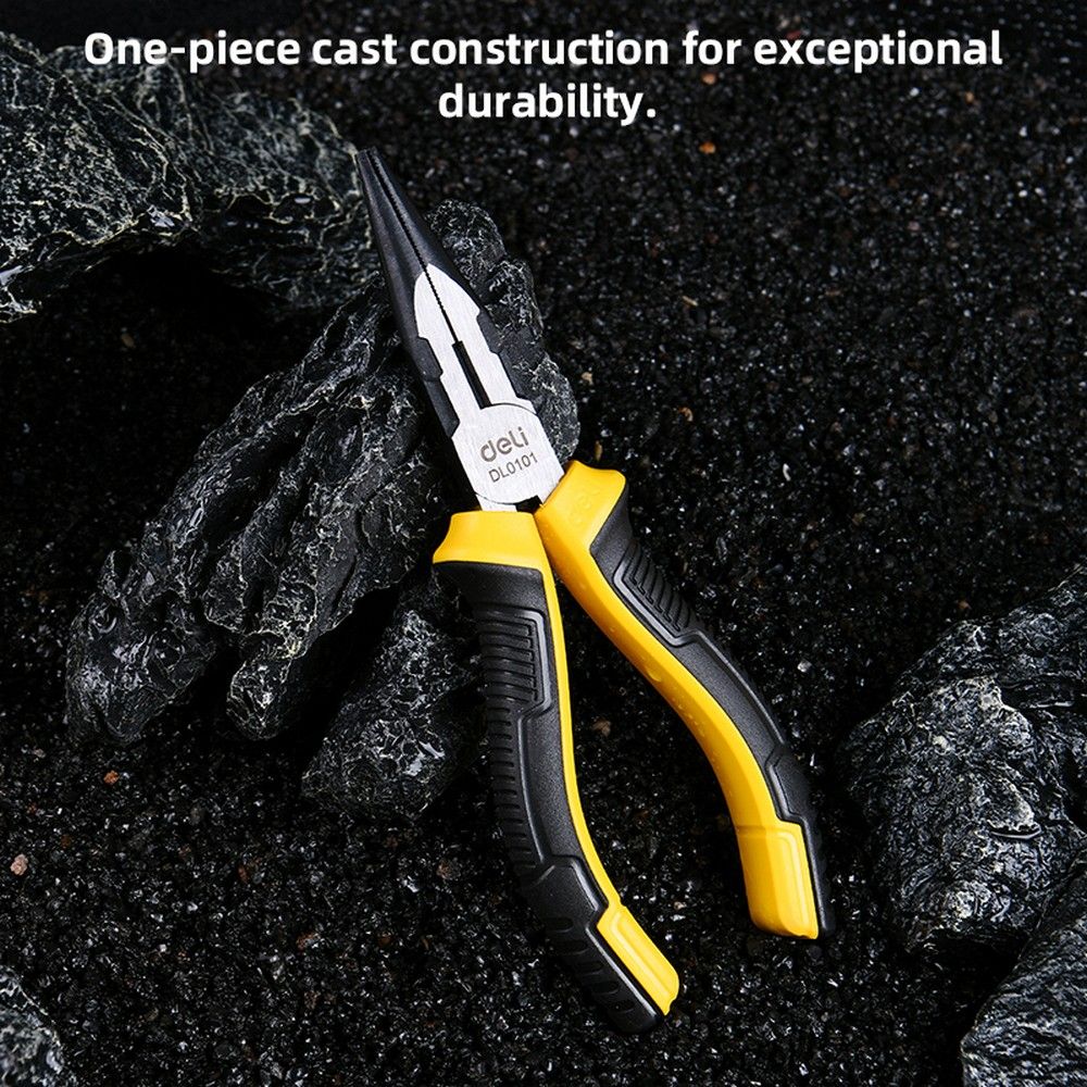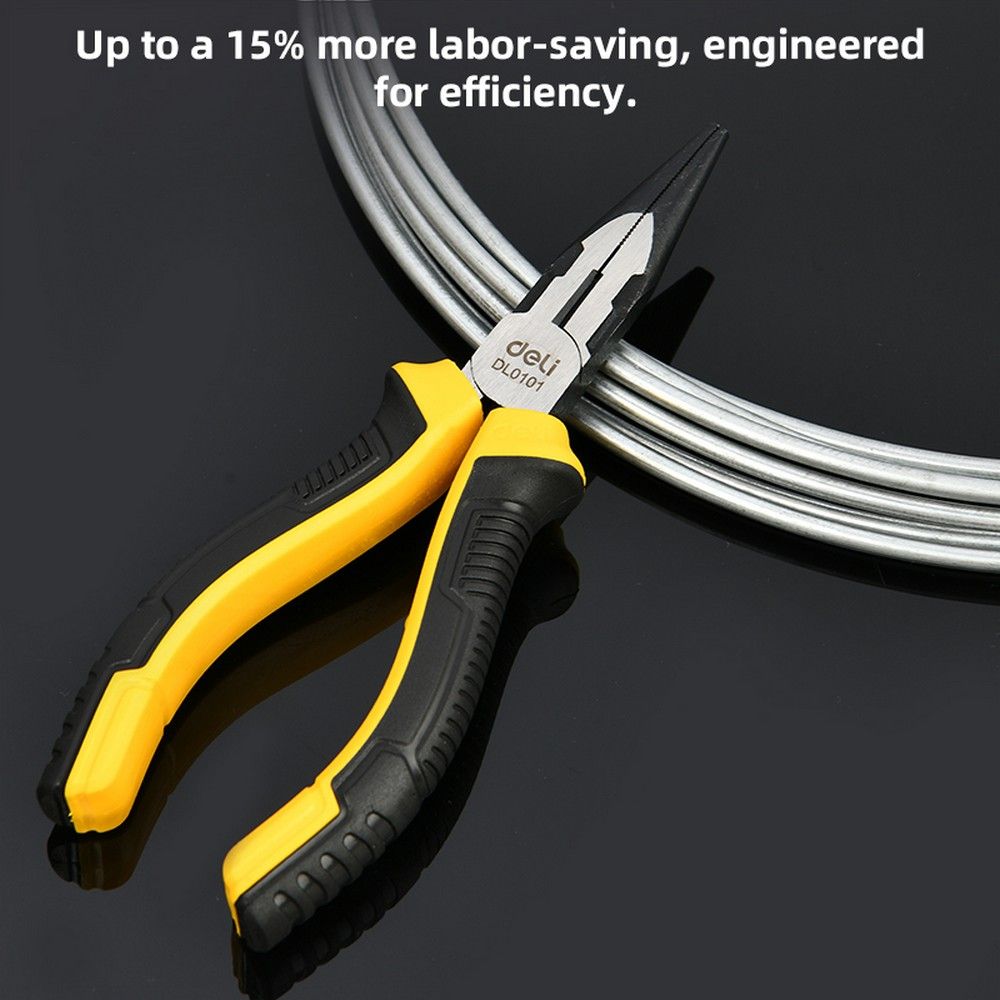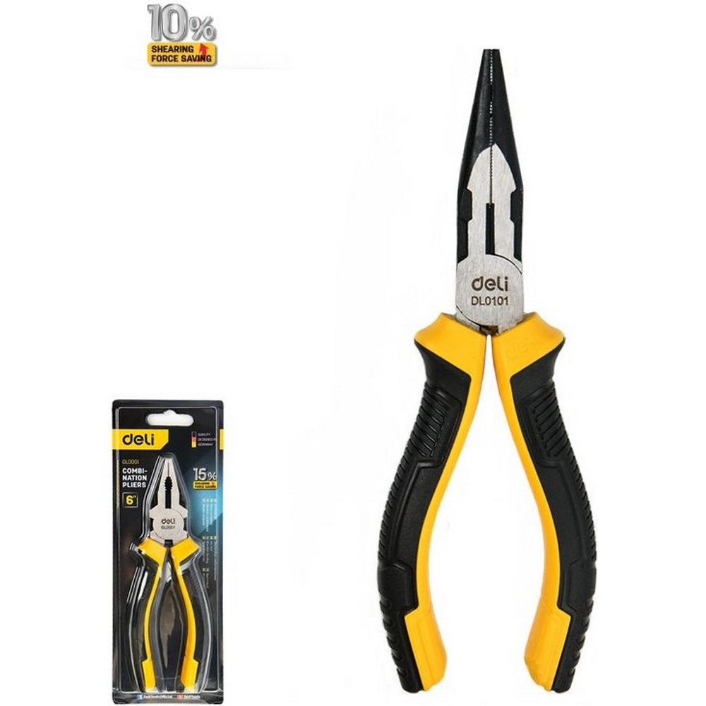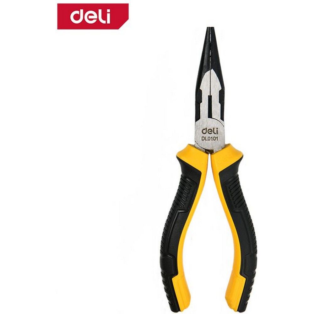 Удлиненные плоскогубцы Deli DL0101 160мм, двухкомпонентная прорезиненная рукоять
