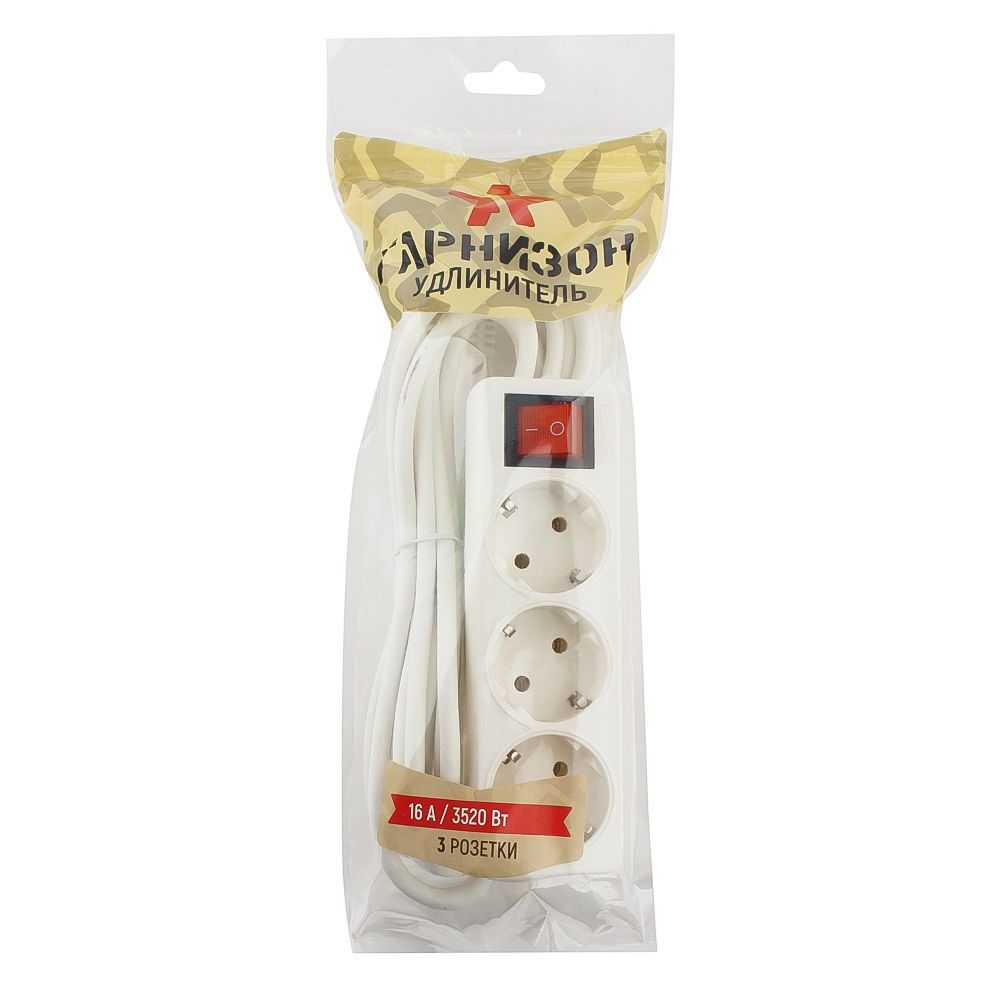 Удлинитель Гарнизон ELB-G3-W-3 3 евророзетки с выключателем и заземлением, допустимый ток 16А, длина 3м. (050746)