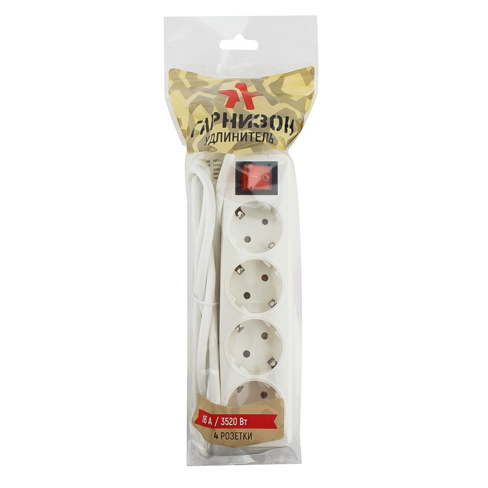 Удлинитель Гарнизон ELB-G4-W-3 4 евророзетки с выключателем и заземлением, допустимый ток 16А, длина 3м. (050906)