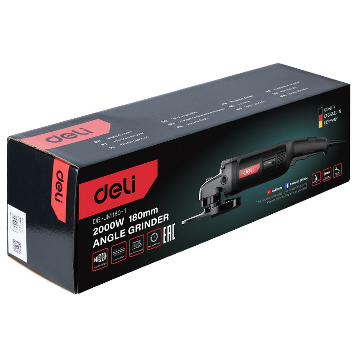 Угловая шлифмашина сетевая Deli DE-JM180-1E (2000Вт, 180мм, 8500об/мин, картон)