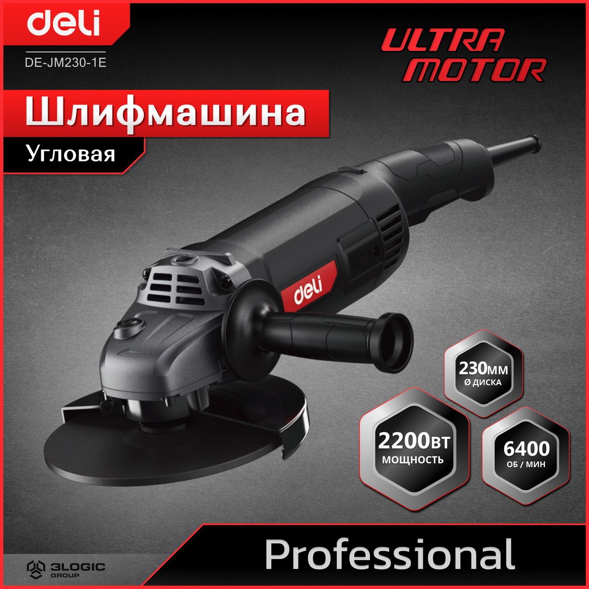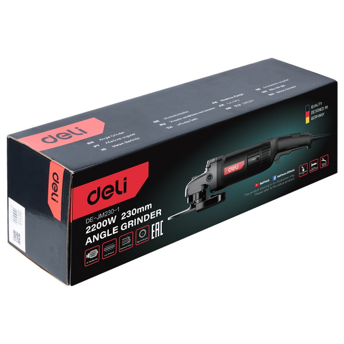 Угловая шлифмашина сетевая Deli DE-JM230-1E (2200Вт, 230мм, 6600об/мин, картон)