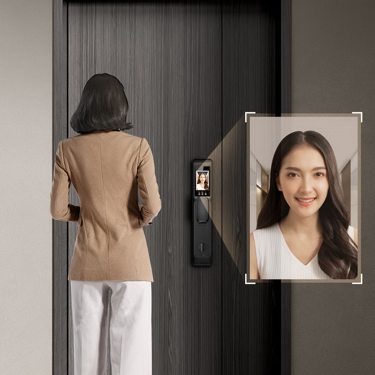 Встроенная камера 720P/89градусов. LCD IPS 3.5". Откр-е/закр-е - автоматическое. Ключ, брелок, сканер отпечатка пальца, Face ID или Bluetooth. Поддержка временных паролей. Время работы на одном заряде - до 6 месяцев. Внутр.панель - 422x83x77мм