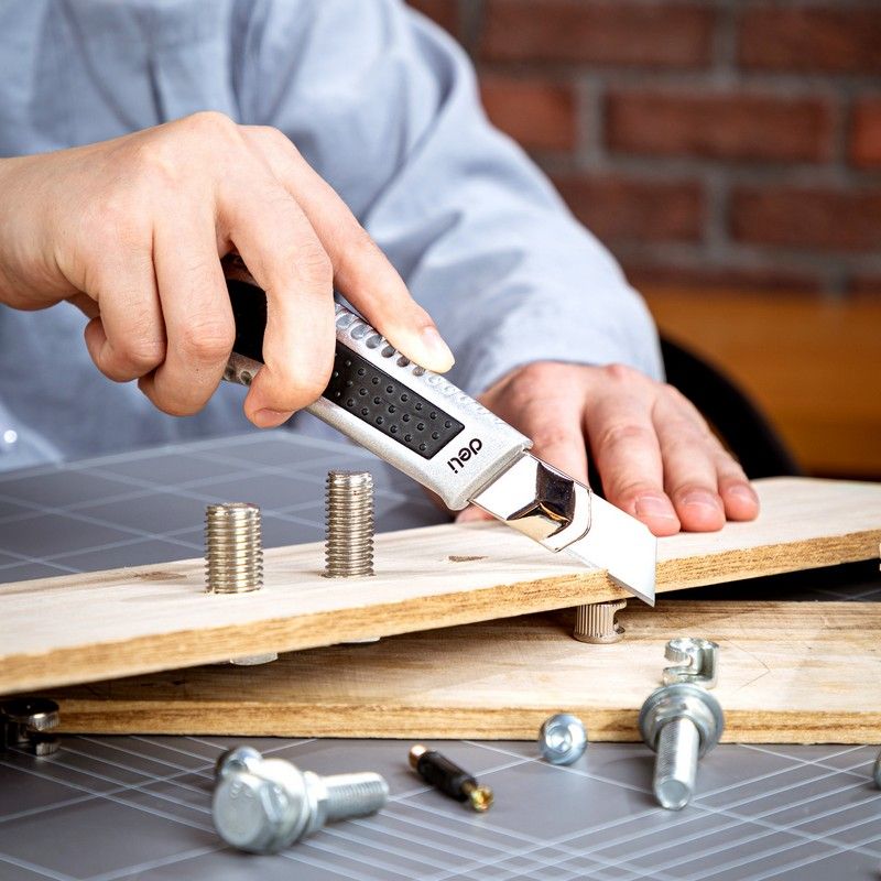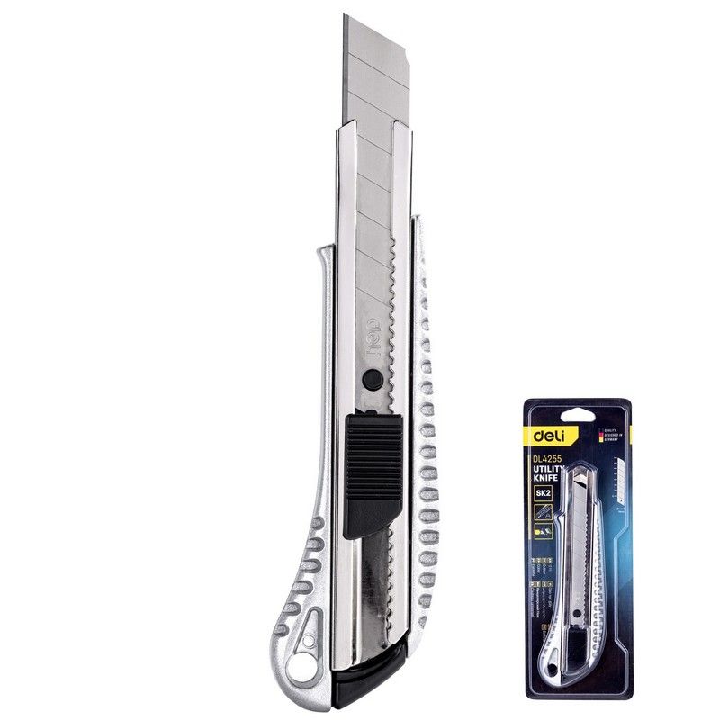 Универсальный нож Deli DL4255 18мм 18мм, лезвие SK2, алюминиевый корпус, длина 155мм