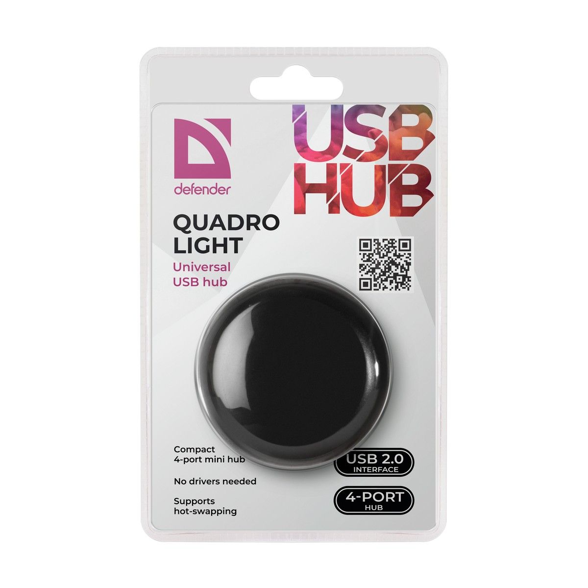 Концентратор Defender Quadro Light USB 2.0, 4 порта (832014)