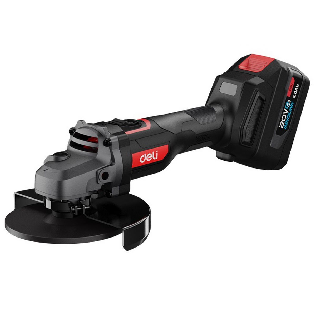 Угловая шлифмашина аккумуляторная Deli DE-JM20-2D4 (2АКБ*4Ач + ЗУ, 20В, 125мм, М14, 3500/6000/10000об/мин, сумка)