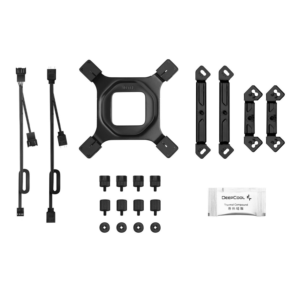 Кулер, крепежный комплект, термопаста, комплект кабелей, документация