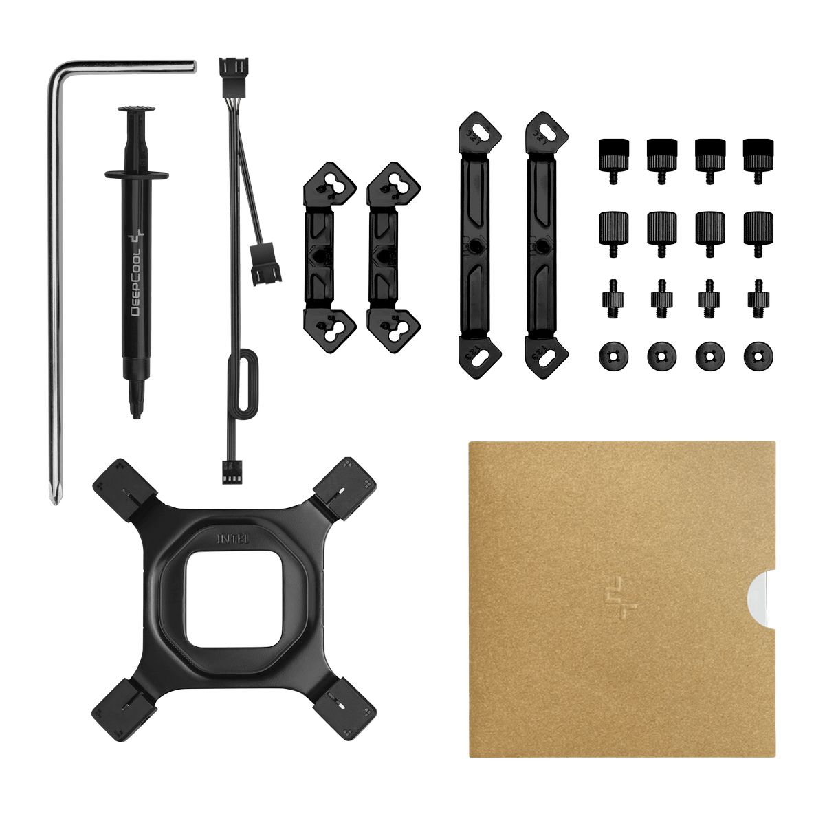 Кулер, крепежный комплект, отвертка, термопаста, документация