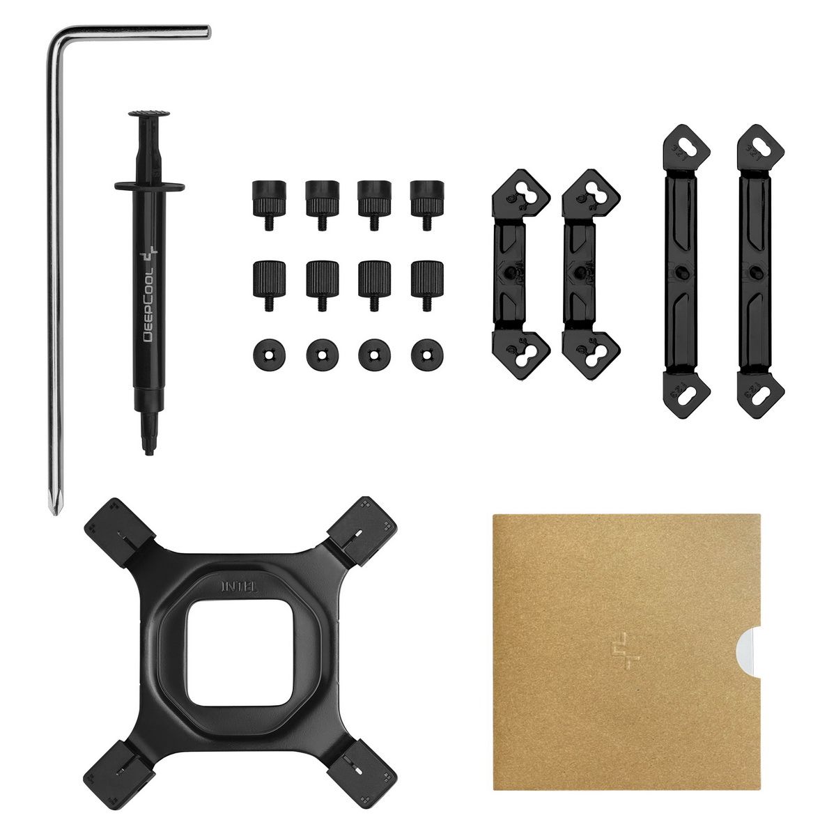 Кулер, крепежный комплект, отвертка, термопаста, документация