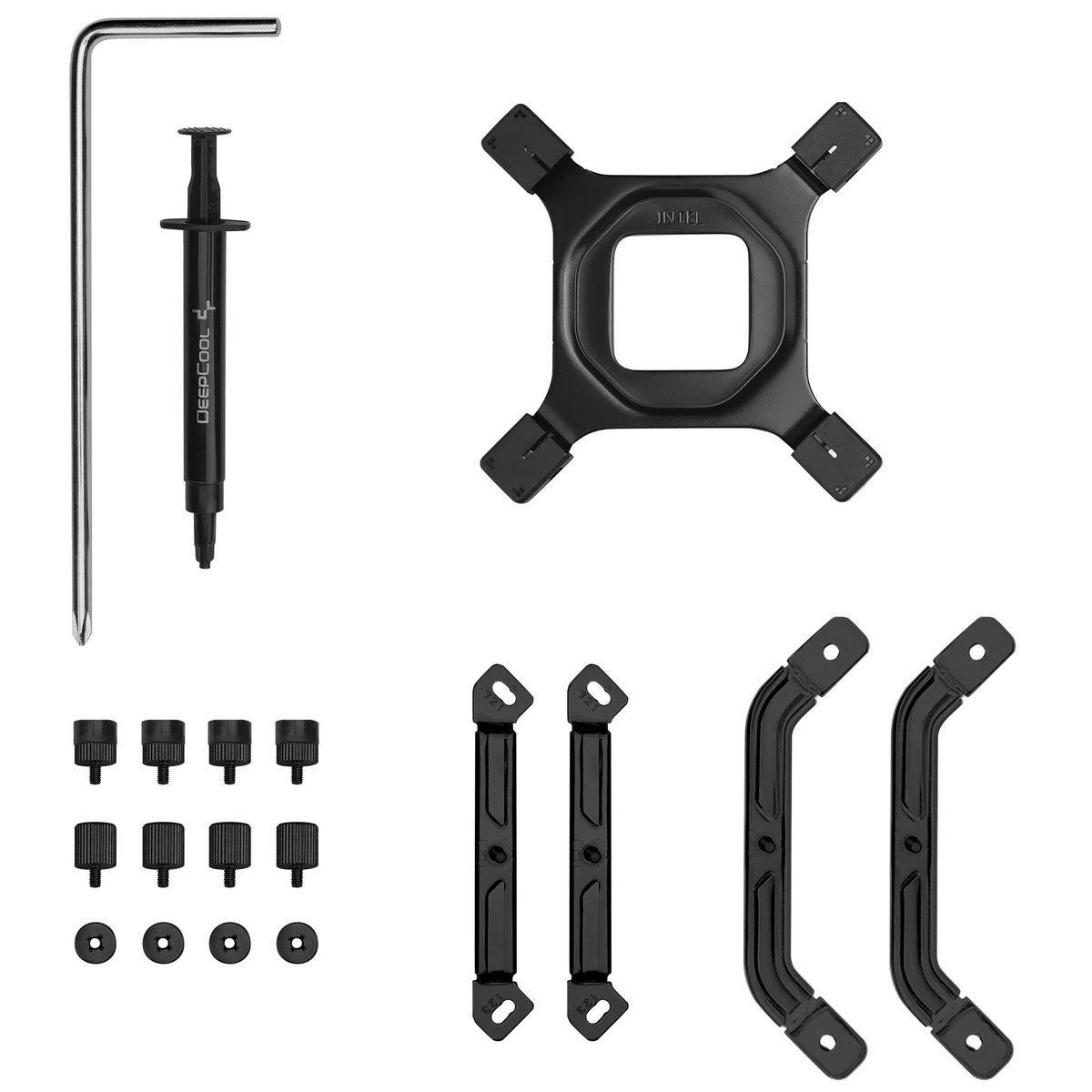 Кулер, крепежный комплект, отвертка, термопаста, документация