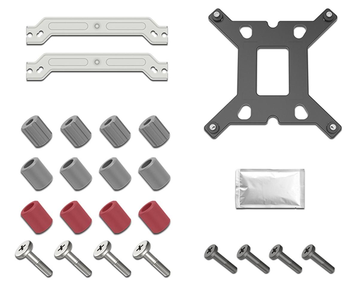 В комплект поставки входят крепления для установки на различные сокеты, термопаста и набор винтов для монтажа.