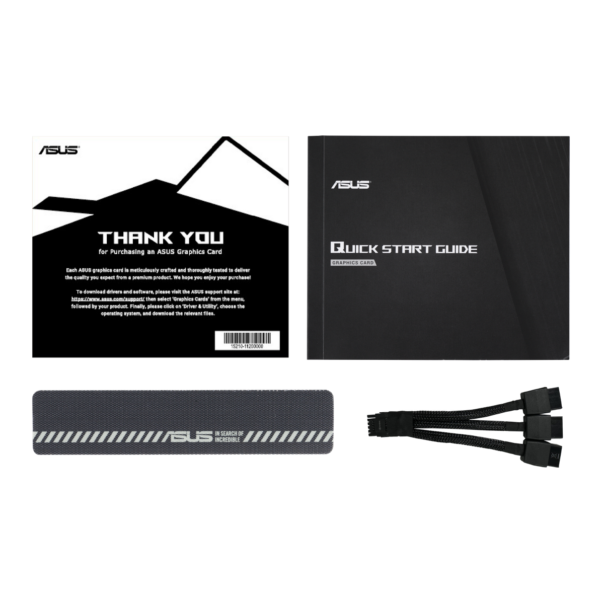 Видеокарта, кабель- адаптер питания, держатель видеокарты (опция), документация