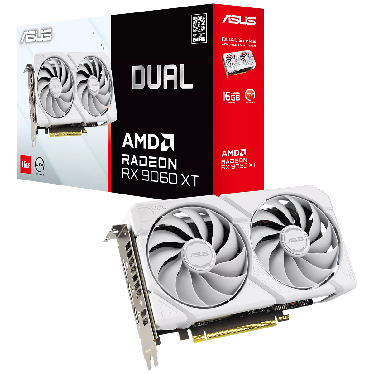 Видеокарта ASUS RX9060XT DUAL WHITE 16GB GDDR6 128bit 2xDP HDMI 2FAN RTL (DUAL-RX9060XT-16G-WHITE)