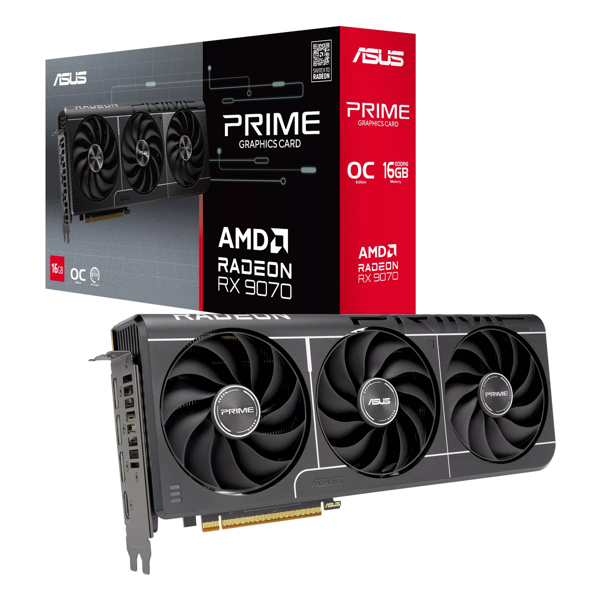 Видеокарта ASUS RX9070 PRIME EVO OC 16GB GDDR6 256bit 3xDP HDMI 3FAN RTL (PRIME-RX9070-O16G-EVO)