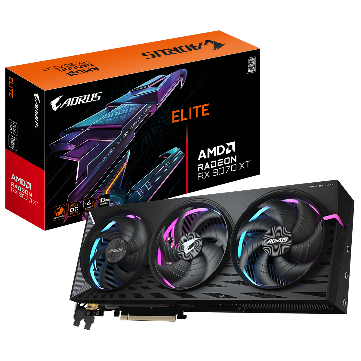 Видеокарта Gigabyte RX9070XT AORUS E 16GB GDDR6 256bit 2xDP 2xHDMI 3FAN RTL