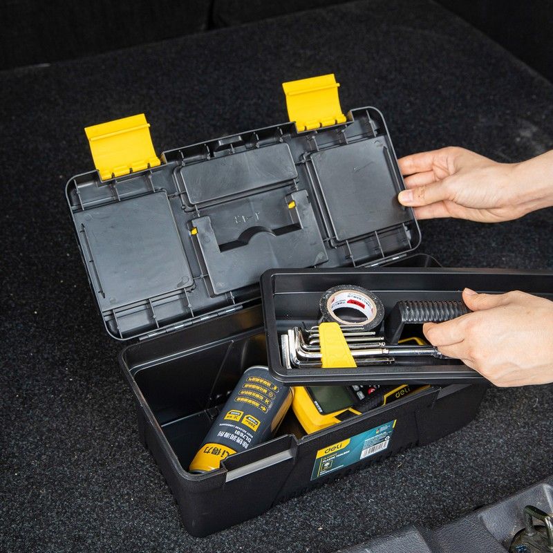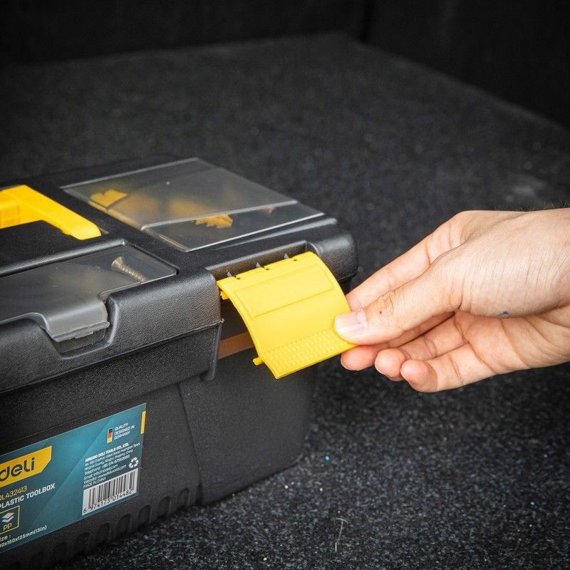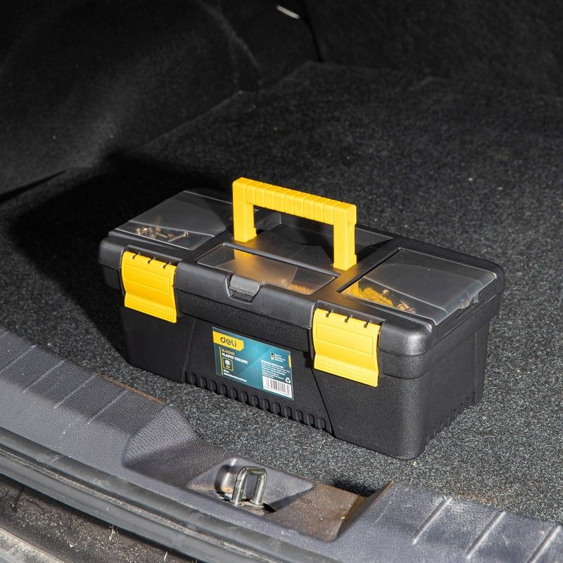 Этот ящик для инструментов от Deli — отличный выбор для тех, кто ищет надёжное и удобное решение для хранения своих инструментов.