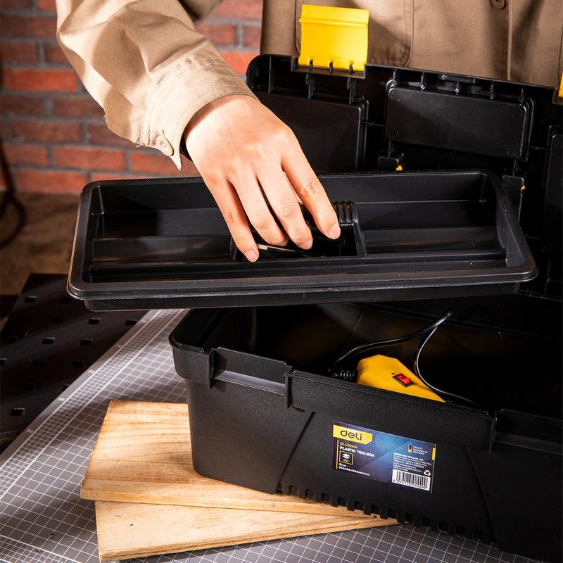 Благодаря своей прочности и функциональности, ящик для инструментов Deli DL432414 станет незаменимым помощником для любого мастера или домашнего умельца.