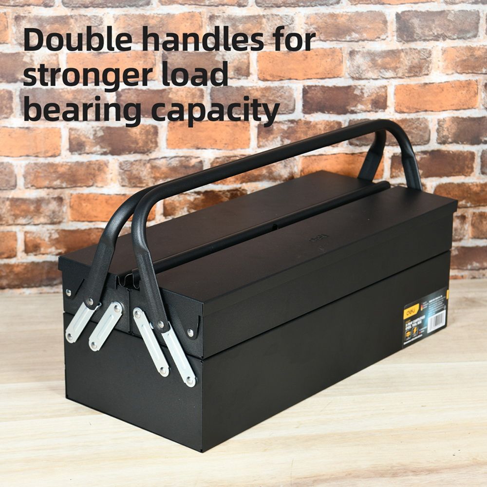 Показать ещеСкрытьМеталлический раскладной ящик для инструментов Deli DL6231