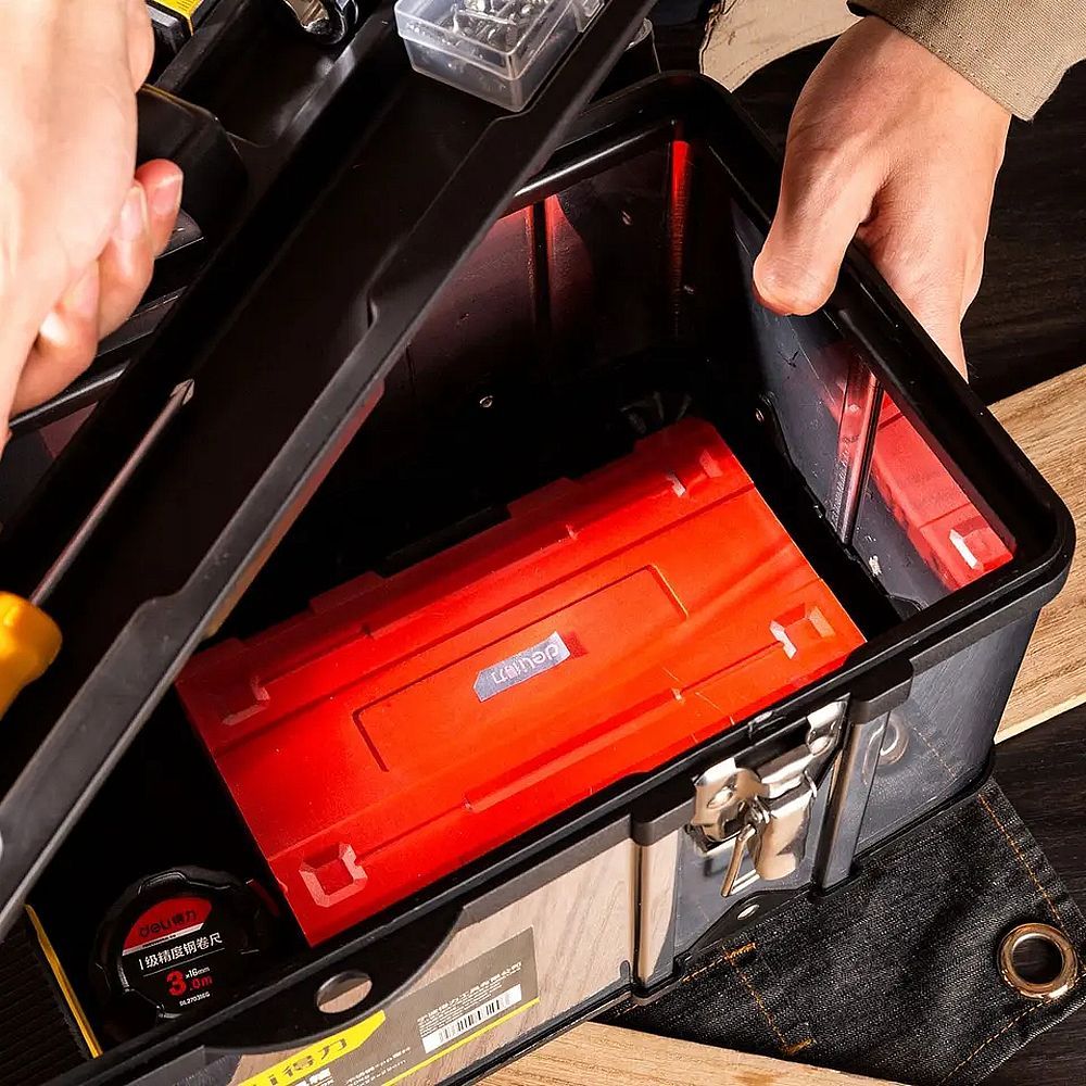 Ящик для инструментов Deli DL432020 станет незаменимым помощником для любого мастера, который ценит порядок и удобство в работе.