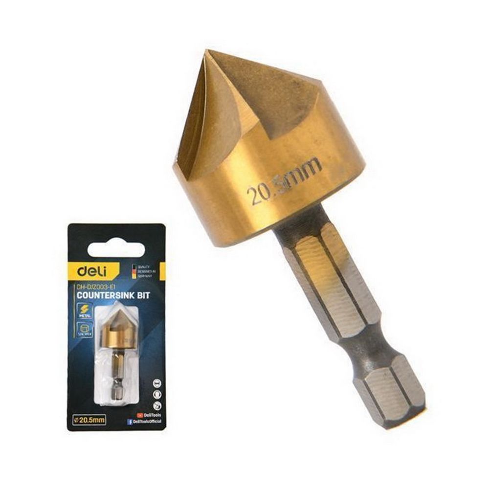 Зенковка конусная под М10 по металлу/дереву/пластику Deli DH-DJZ003-E1 20,5мм, сталь HSS, угол заточки 90град., шестигранный хвостовик