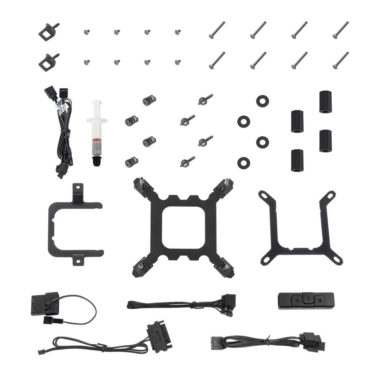 СЖО, вентиляторы 3 шт., крепежный комплект, комплект кабелей, термопаста